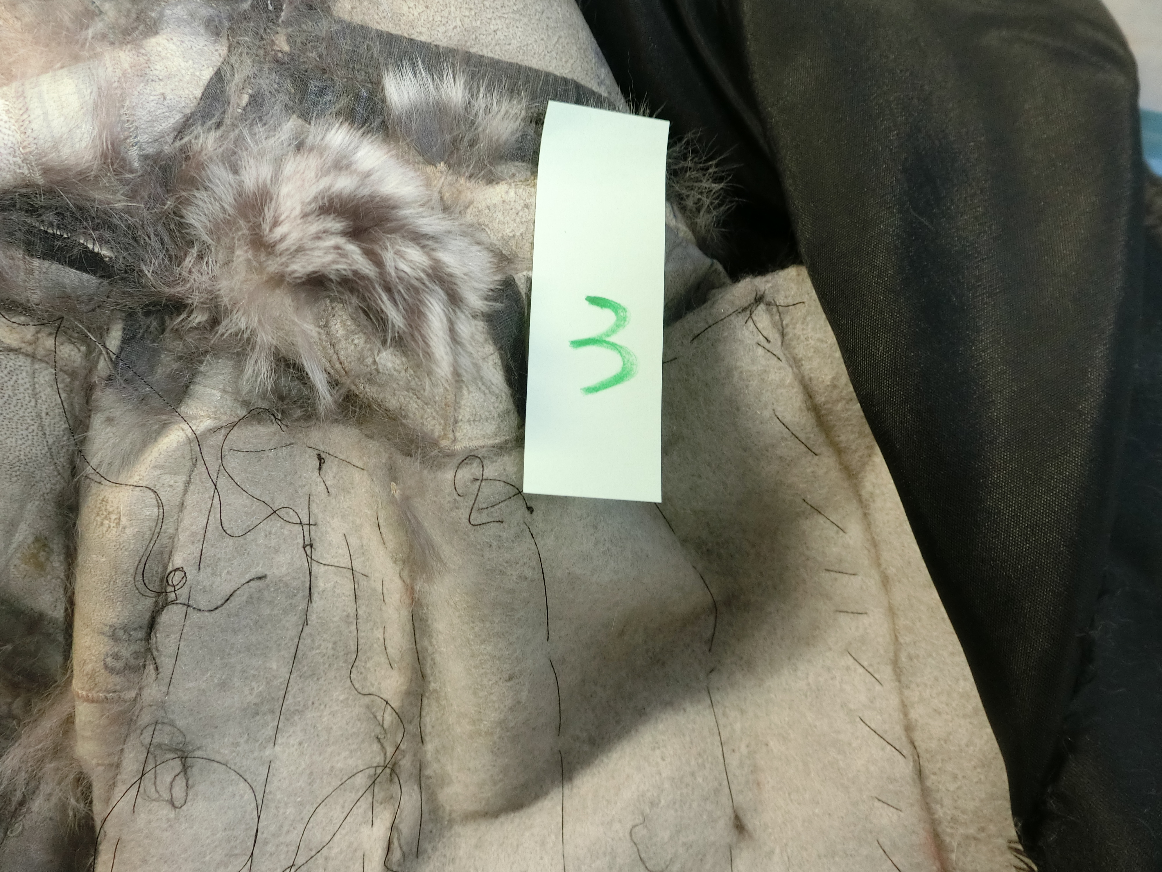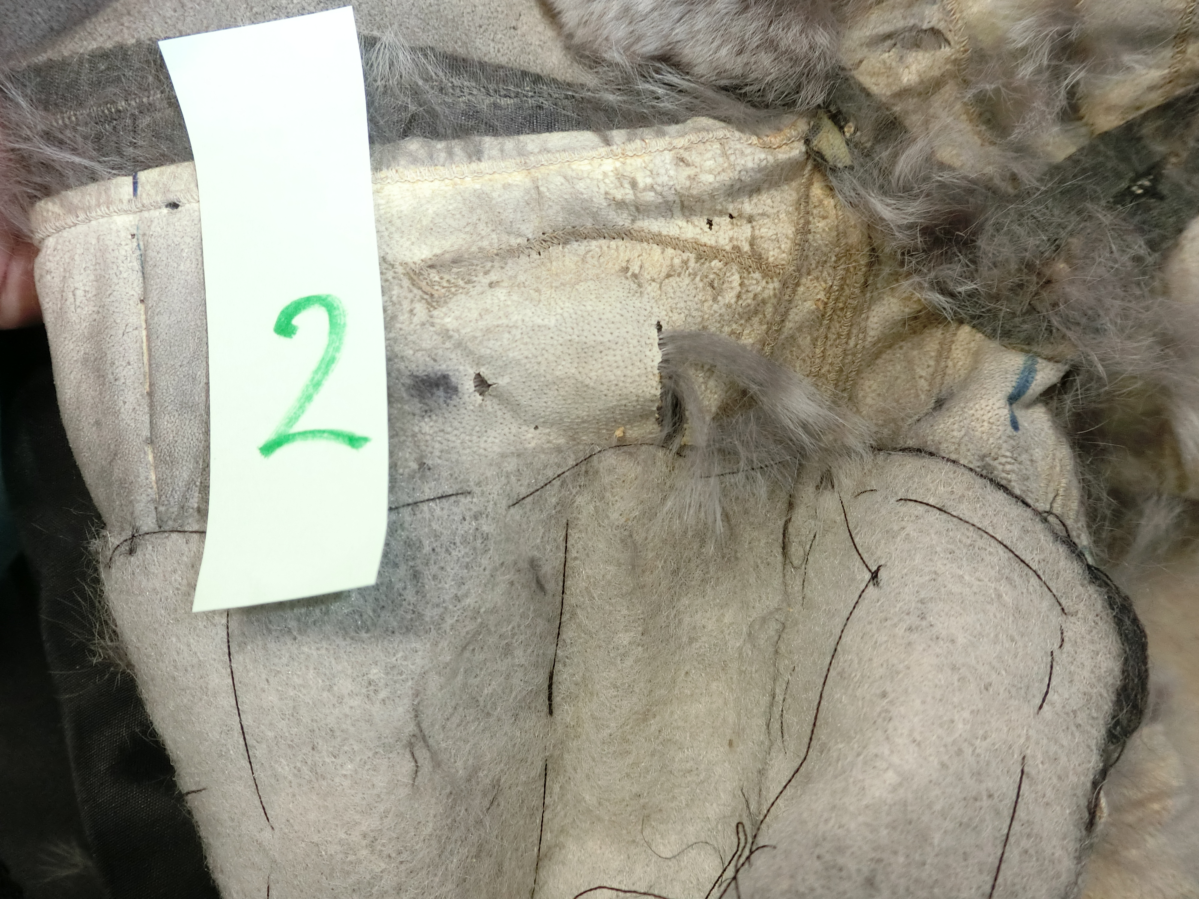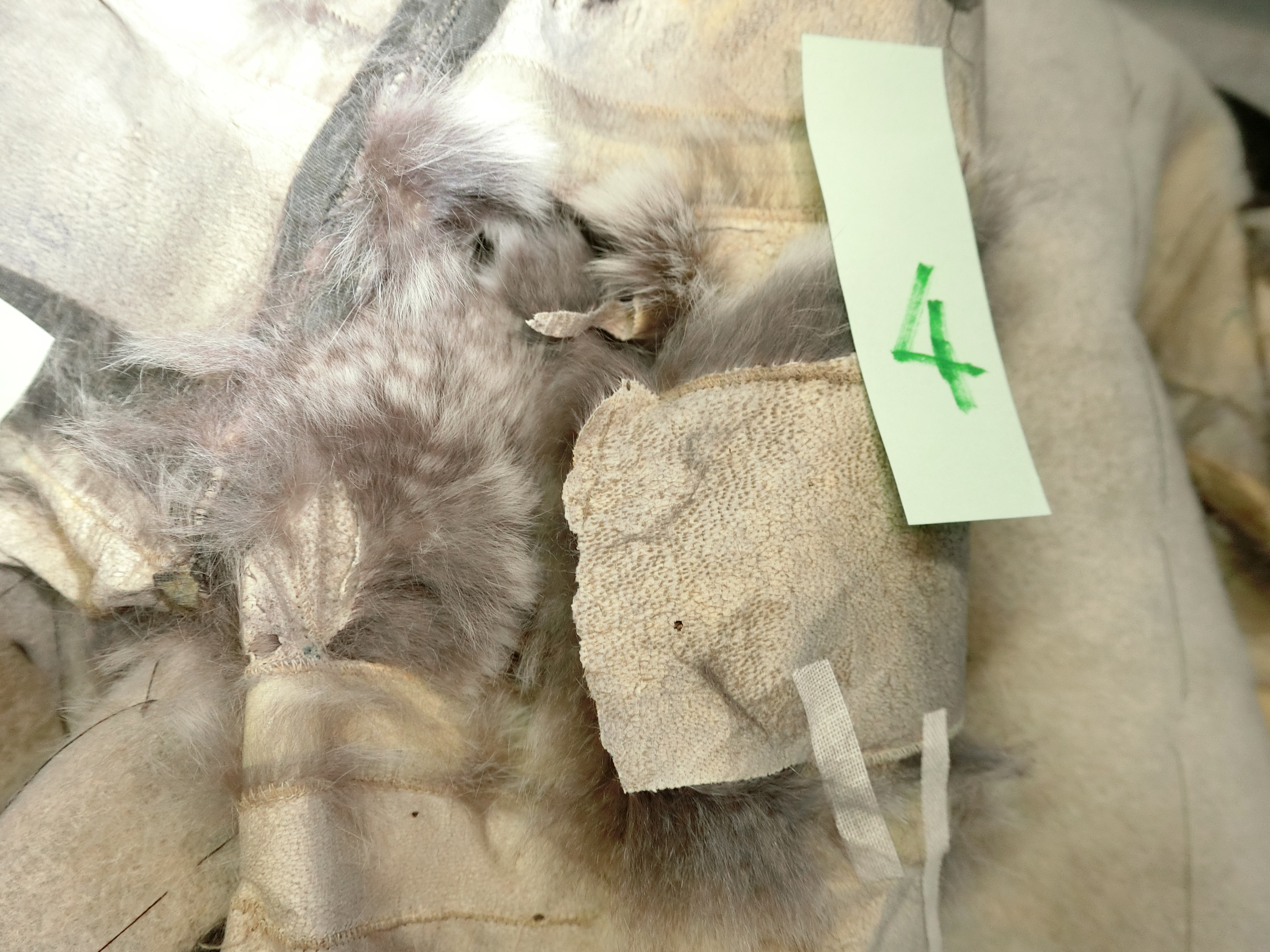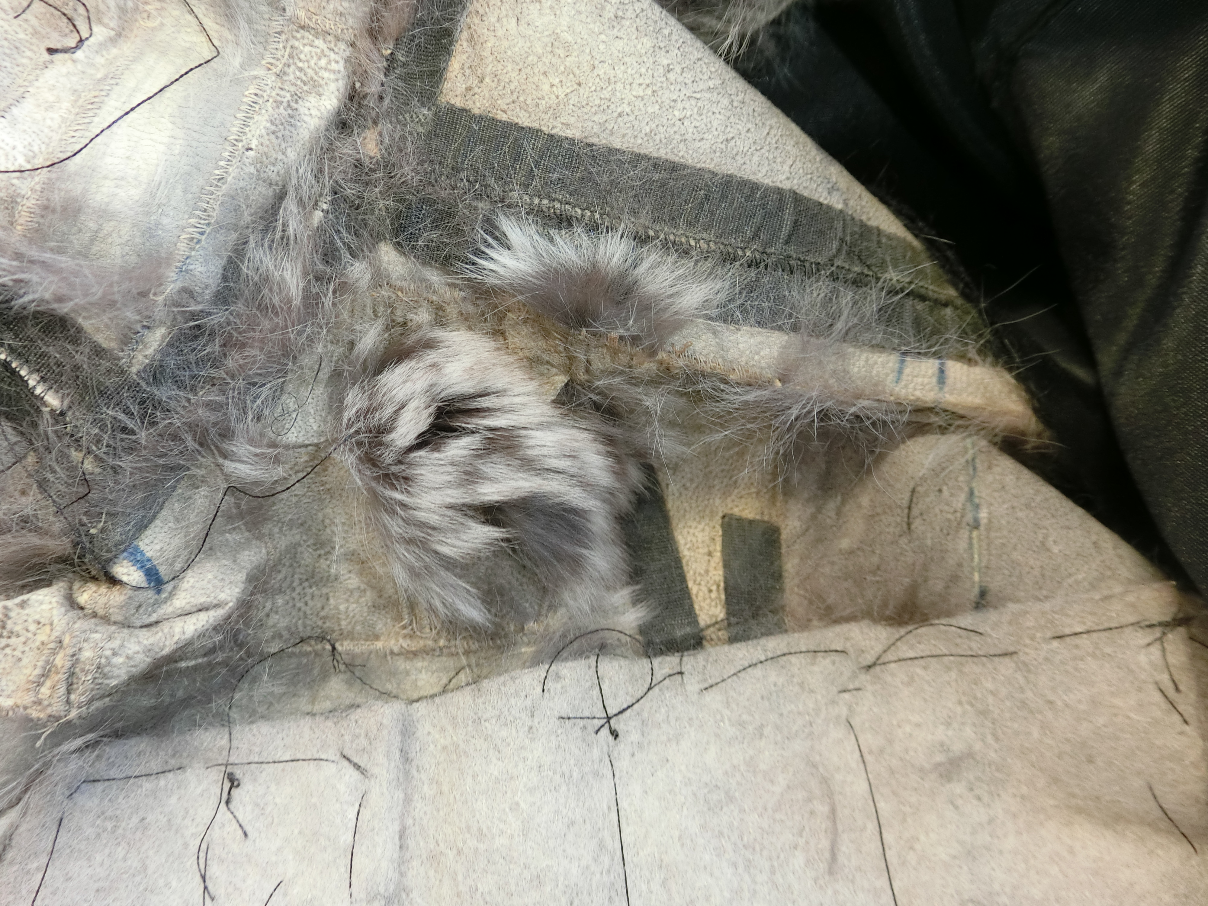 裏地と取って皮面からみると、毛面より複雑なヤブレ